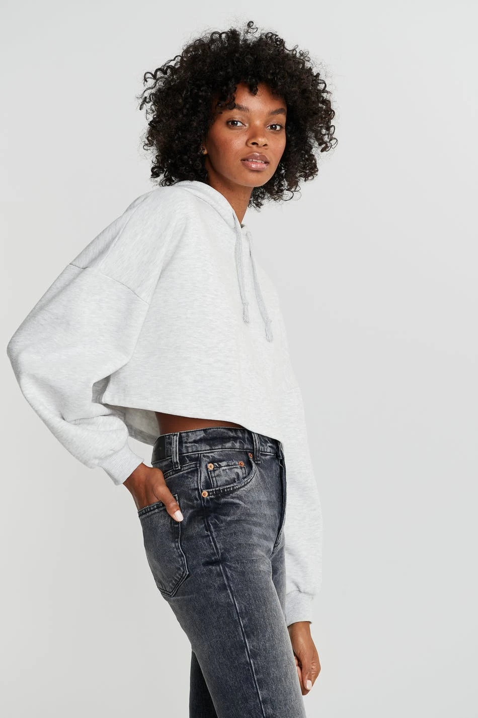 Gina Tricot Basic Cropped Hood Lt Greymelange