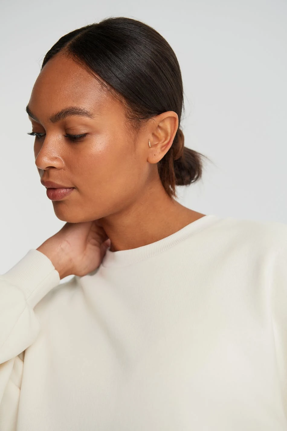 Soft jumper with an oversize fit. The jumper is white and long-sleeved. It is made of jersey.