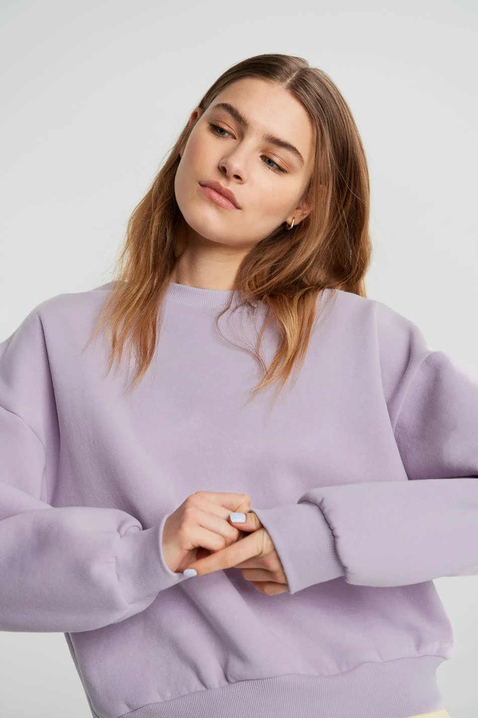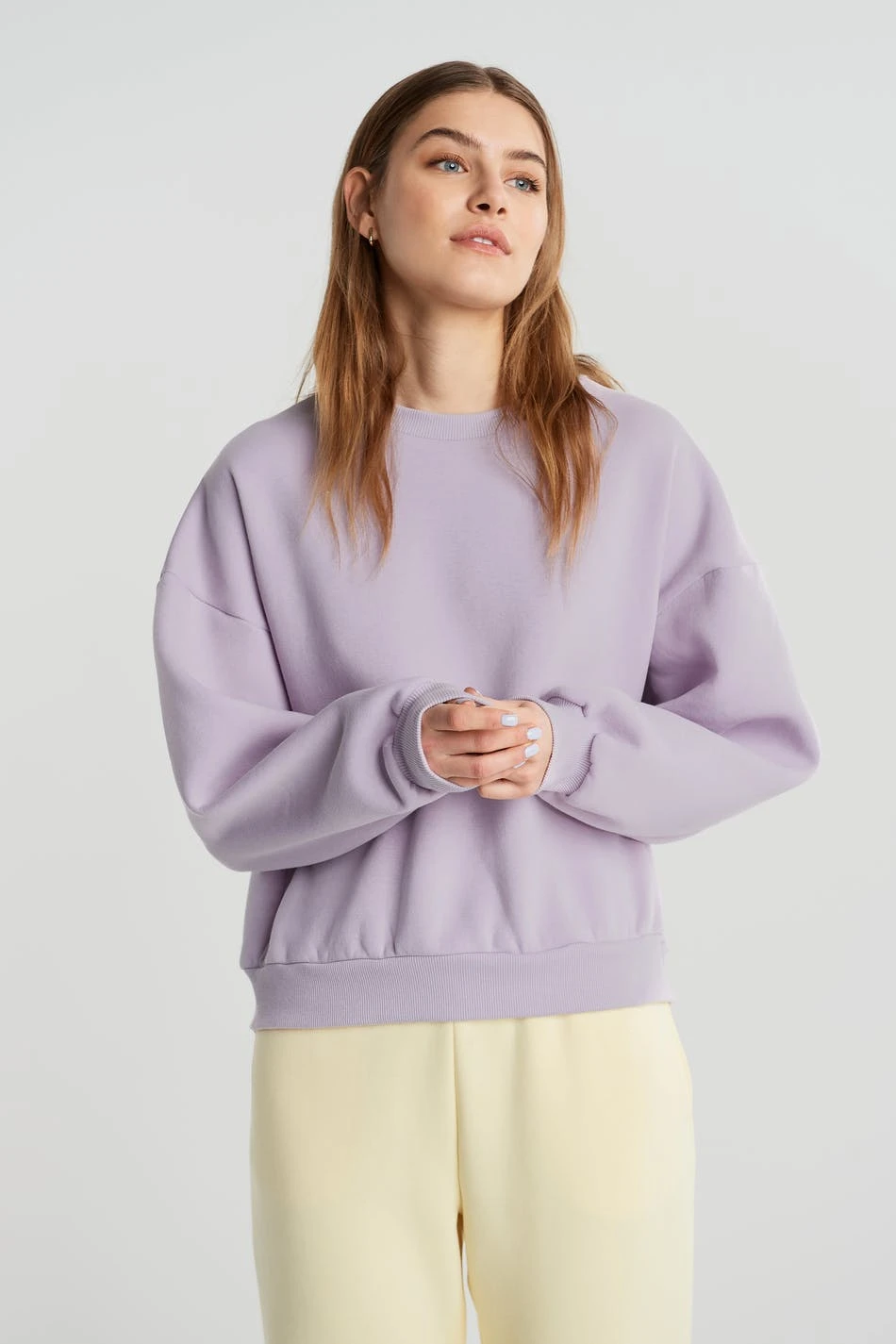 Soft sweatshirt with an oversize fit. The sweatshirt is purple and long-sleeved. It is made of jersey.
