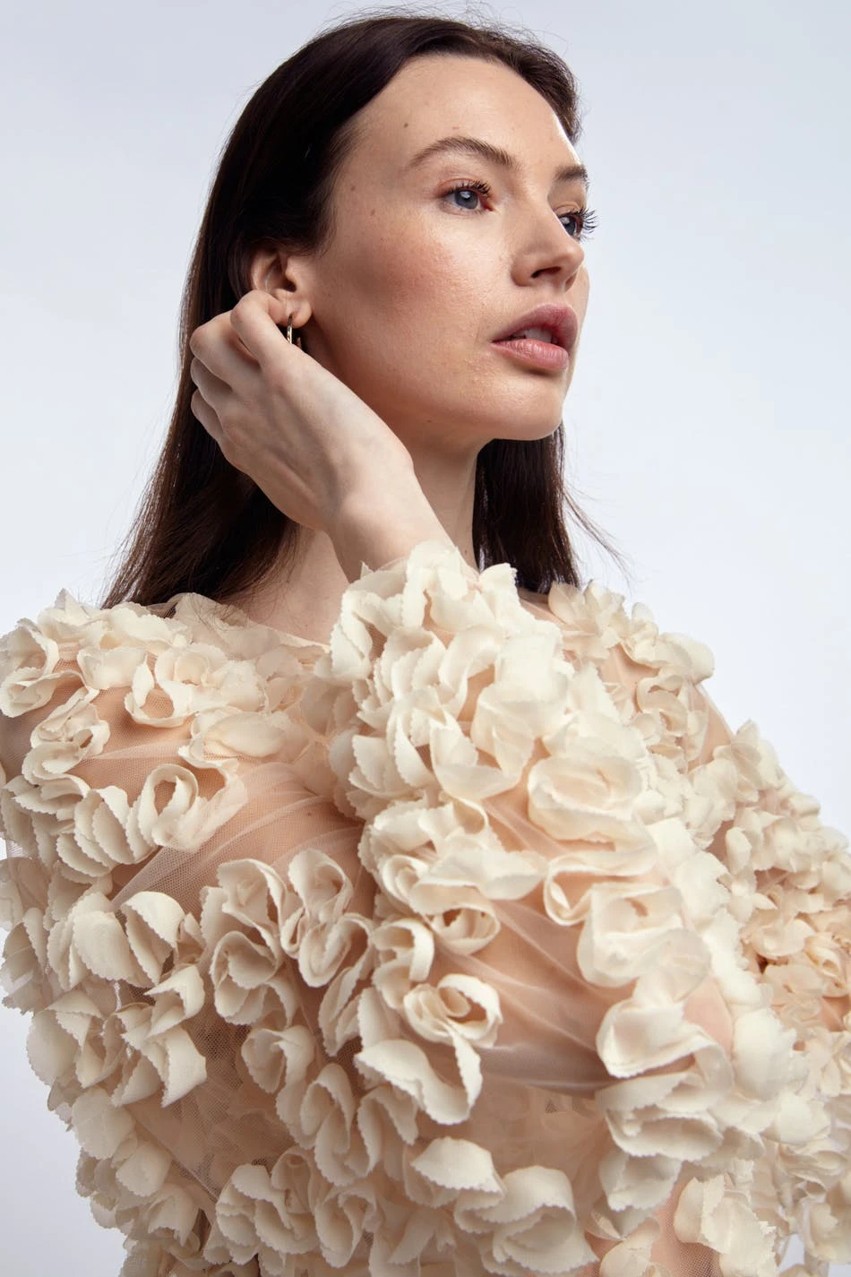Short-sleeved blouse with a generous fit. The blouse is perfect for the party and white and has mesh details all over. It is made of mesh.