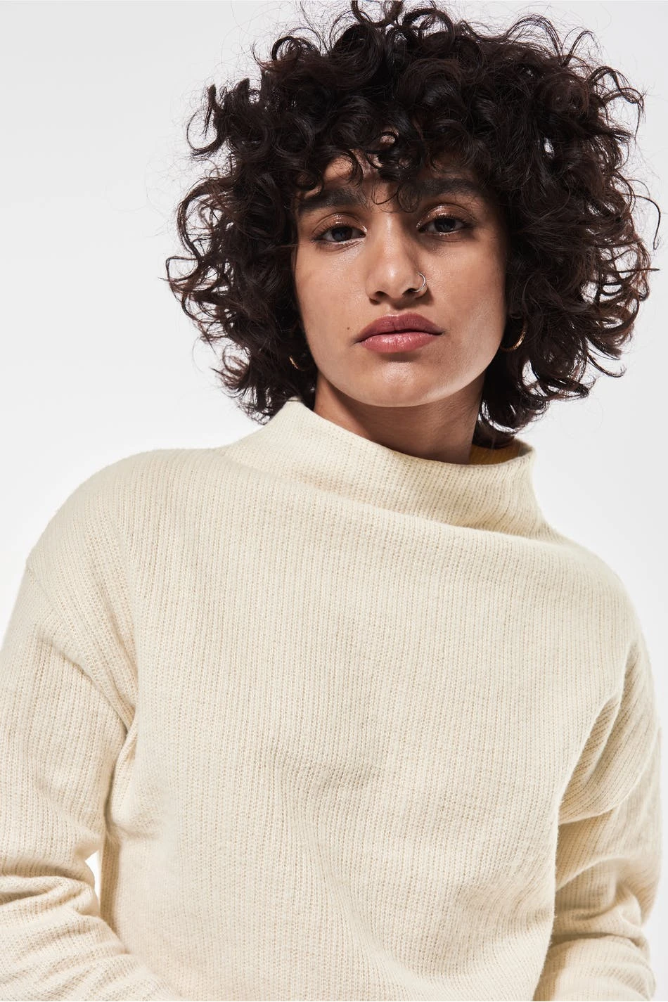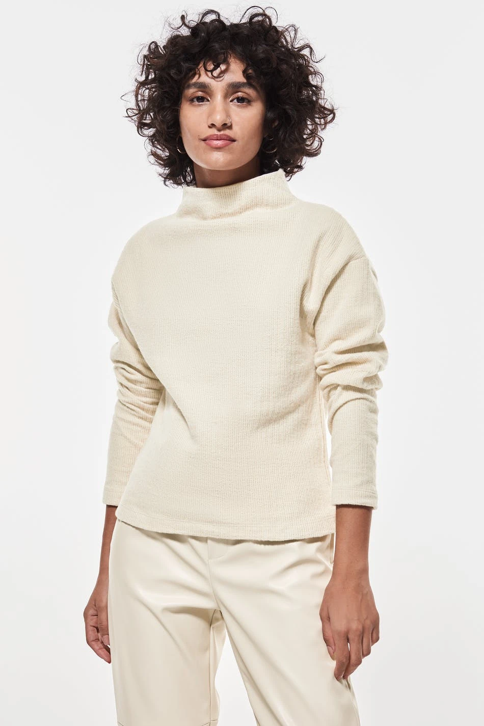Sweater in soft brushed jersey. Funnel neck Cozy and comfortable The fabric contains better cotton Supplier: Kardem Tekstil San ve Tic A.-RS. Production unit: Kaizen d.o.o. Smederevo.