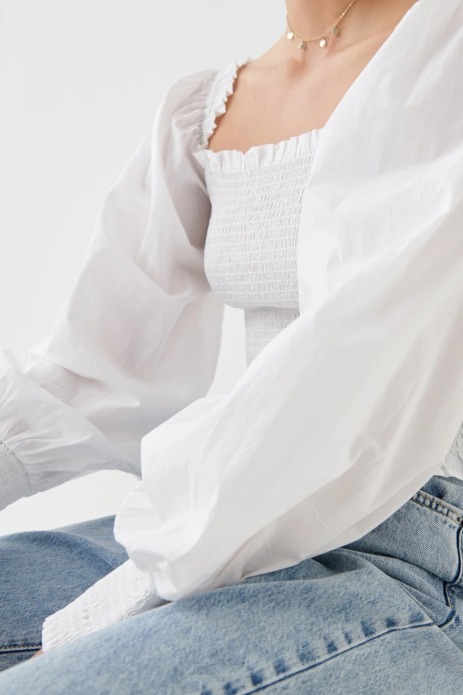 Gina Tricot Estra Smock Blouse Offwhite