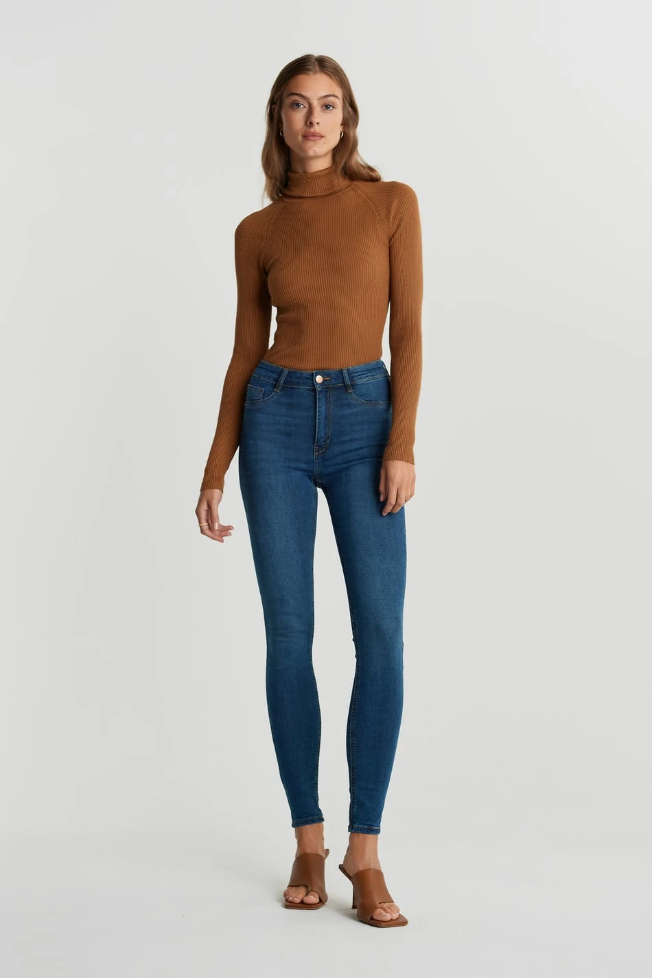 Soft highwaist jeans with a fitted fit. The jeans is blue and comfortable and has longer leg length. It has a skinny fit, fake pockets in front and a superstretch. Perfect for those who are 175 cm (5 ft 9 in.) or taller.