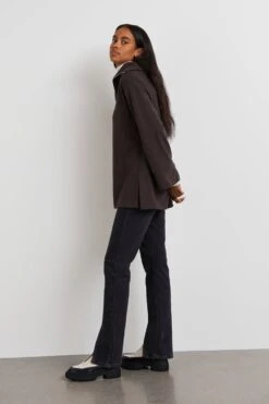Short blouse with long puff sleeves. The blouse is perfect for the party and black and has gathering at the hem. It has a keyhole opening at the front and a high neckline.