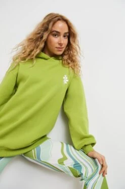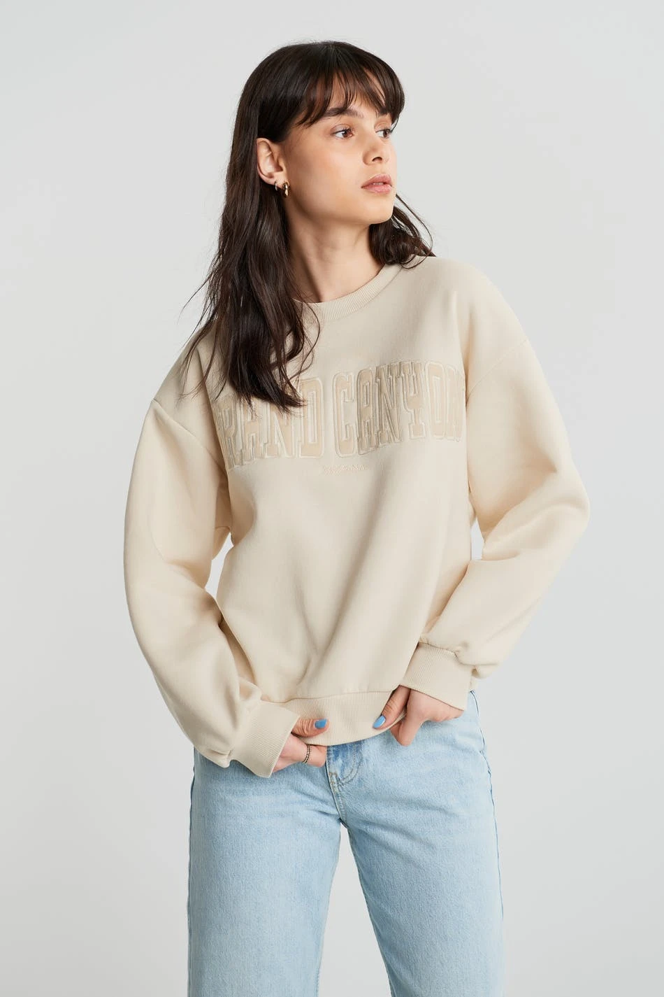 Sweatshirt with a print at the front. The sweatshirt is light beige and has an oversize fit.