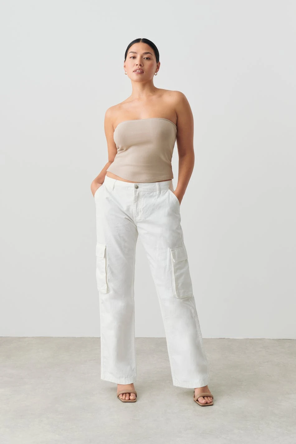 Ribbed tube top in jersey with figure-hugging fit. The top is beige and has cropped length.